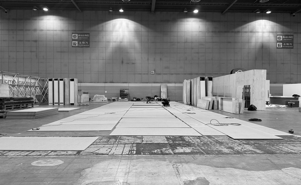 모든 시공 과정은 킨텍스 안전 기준을 기반으로 진행되었으며, 구조물 하중·전기·소방 등 필수 요소를 철저히 검수했습니다. 직원과 관람객 동선을 분리하는 구조 배치를 통해 행사중 편리성과 안전성을 우선시했습니다.
